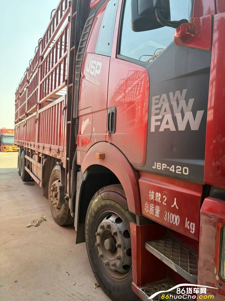一台原汁原味的解放j6p前四后八高栏车,18年12月份,420锡柴发动机,国五,带全保